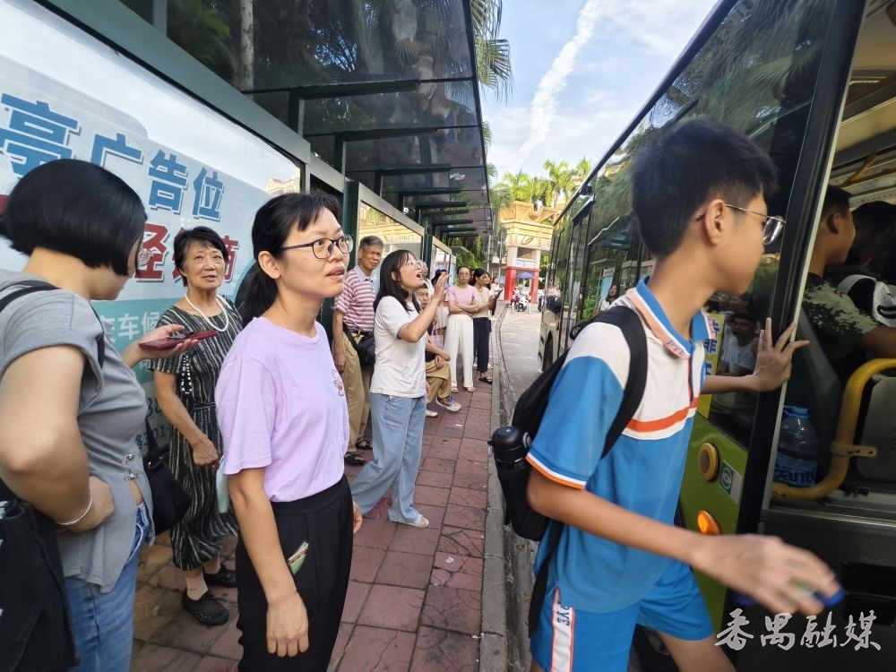 早晨6时50多分,记者来到碧桂园东苑大门口的公交车站,此时已有数十名学生在这里候车,另有十多名送学生乘车的家长。经打听,这些学生都是住在碧桂园东苑的石壁中学学生。7时整,一辆番101(开往石壁中学)公交车缓缓进站,现场有家长欢呼:“车来了!”待公交车停稳、车门打开,学生们排着队、提着行李依次上车。不到3分钟时间,在此候车的约50名学生全部上了车。随着装满一车学生的公交车离站,一名家长感慨地说:“总算搞定了,有公交车接孩子上学真省心。”家长介绍说,到了放学时间,番101公交车也会把孩子从石壁中学接回碧桂园东苑。